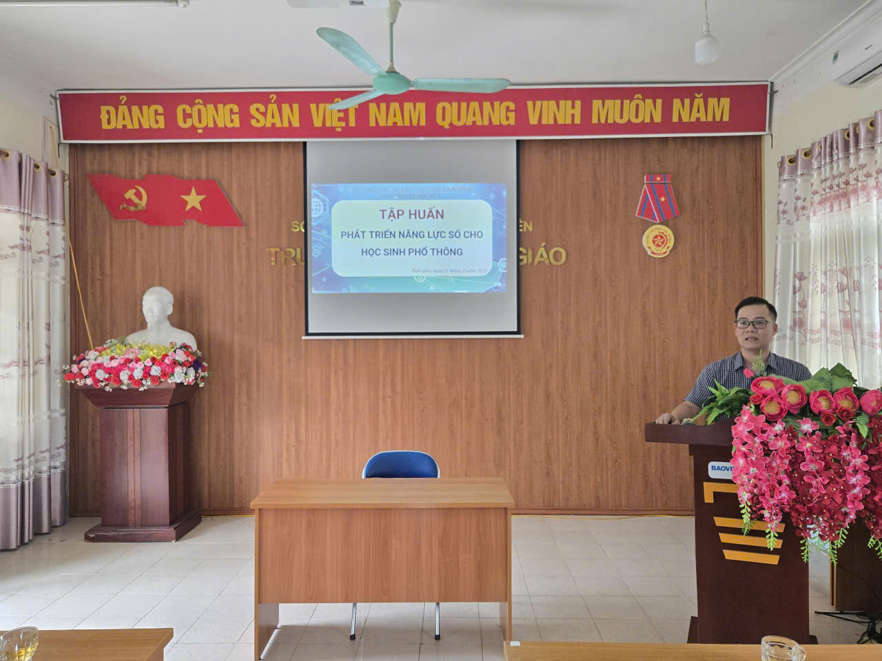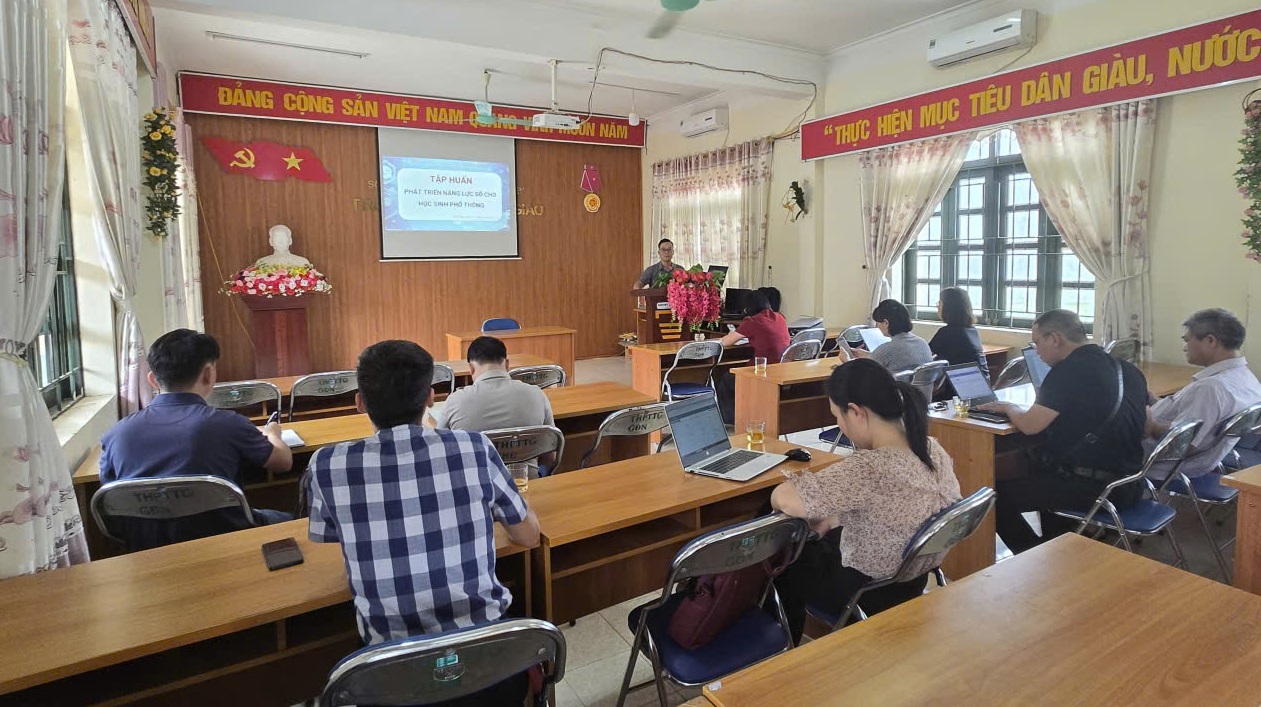 Thực hiện các văn bản chỉ đạo của Sở GD&ĐT Điện Biên và Kế hoạch của trường THPT Tuần Giáo, Cụm chuyên môn số 4 cấp THPT tổ chức tập huấn cho đội ngũ cán bộ quản lý và giáo viên nòng cốt nhằm đưa Khung năng lực số vào kế hoạch giáo dục nhà trường và hoạt động dạy học.