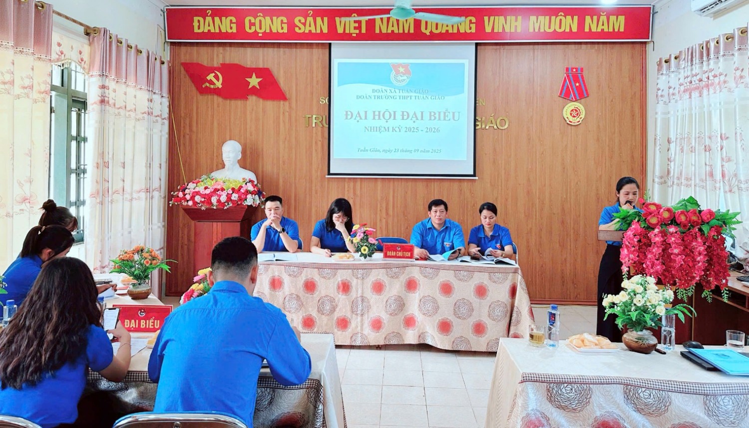 Thực hiện chương trình công tác Đoàn và phong trào thanh niên năm học 2025 – 2026, được sự chỉ đạo của Đoàn xã Tuần Giáo và Đảng bộ – Ban Giám hiệu nhà trường, chiều ngày 23 tháng 9 năm 2025, Đoàn trường THPT Tuần Giáo đã long trọng tổ chức Đại hội đại biểu Đoàn trường THPT Tuần Giáo nhiệm kỳ 2025-2026.