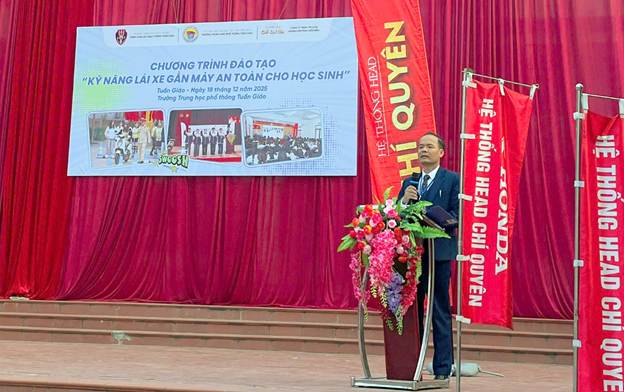 Thực hiện kế hoạch năm học và nhằm mục tiêu xây dựng văn hóa giao thông học đường, sáng ngày 18/12/2025, trường THPT Tuần Giáo đã phối hợp cùng Trạm Cảnh sát Giao thông Tuần Giáo – PC08 – Công an tỉnh Điện Biên và Công ty TNHH Thương mại & Dịch vụ Hoàng Kim tổ chức thành công chương trình “Tuyên truyền, phổ biến giáo dục pháp luật và tập huấn kỹ năng lái xe an toàn cho học sinh năm 2025”.
