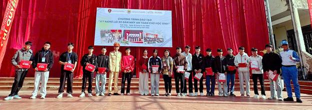 Phát biểu tại chương trình, thầy giáo Bùi Trung Thành – Hiệu trưởng nhà trường nhấn mạnh vai trò đặc biệt quan trọng của việc giáo dục an toàn giao thông trong môi trường học đường. Thầy cho biết: “Việc trang bị kiến thức pháp luật và kỹ năng lái xe an toàn không chỉ giúp học sinh bảo vệ bản thân mà còn góp phần xây dựng ý thức chấp hành luật giao thông, hình thành nếp sống văn minh, trách nhiệm đối với cộng đồng”.