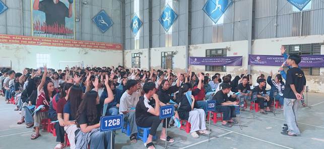Không khí buổi nói chuyện diễn ra sôi nổi, cởi mở. Các em học sinh mạnh dạn đặt câu hỏi, bày tỏ băn khoăn và nhận được sự giải đáp tận tình, gần gũi từ các báo cáo viên. Nhiều chia sẻ thực tế, sinh động đã giúp các em nhận thức rõ hơn về cơ hội, thách thức của từng lựa chọn nghề nghiệp và vai trò của việc học tập hiện tại.