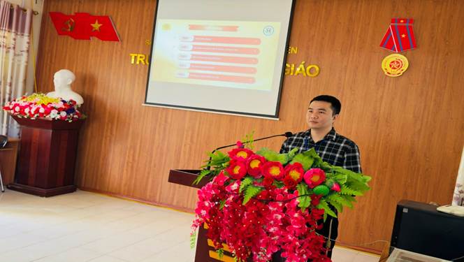 Thầy giáo Phạm Quang Hưởng – Bí thư đoàn trường trình bày nội dung buổi tập huấn