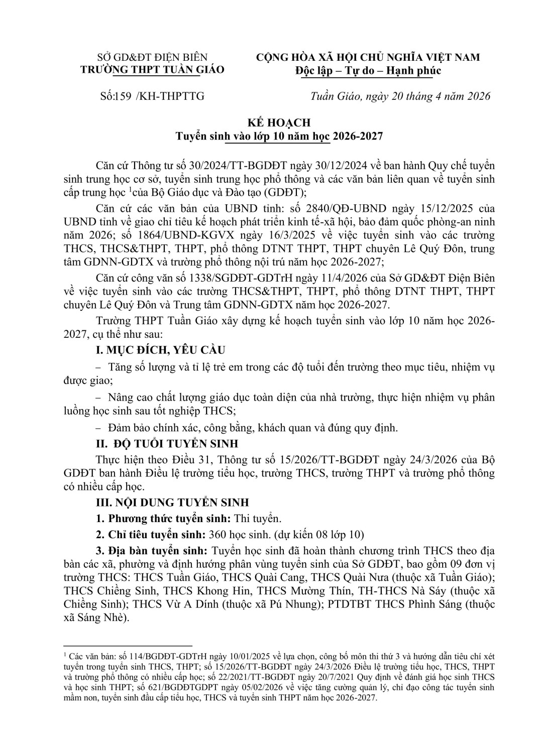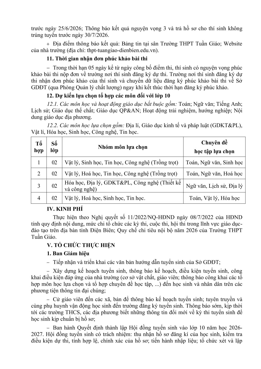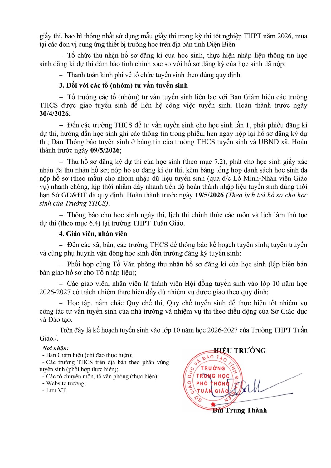 Thông báo danh sách trúng tuyển nguyện vọng 1 vào trường THPT Tuần Giáo năm học 2023-2024