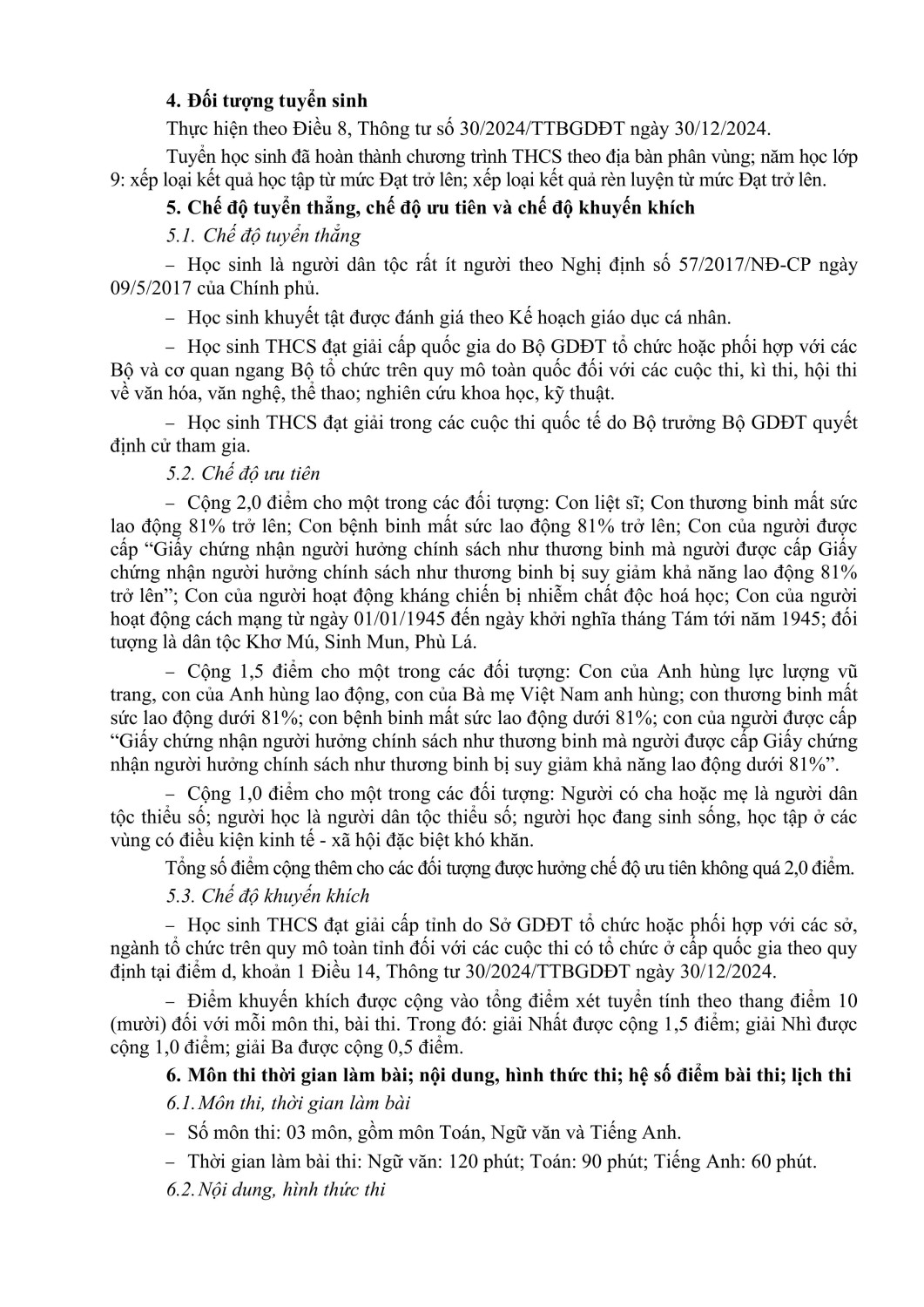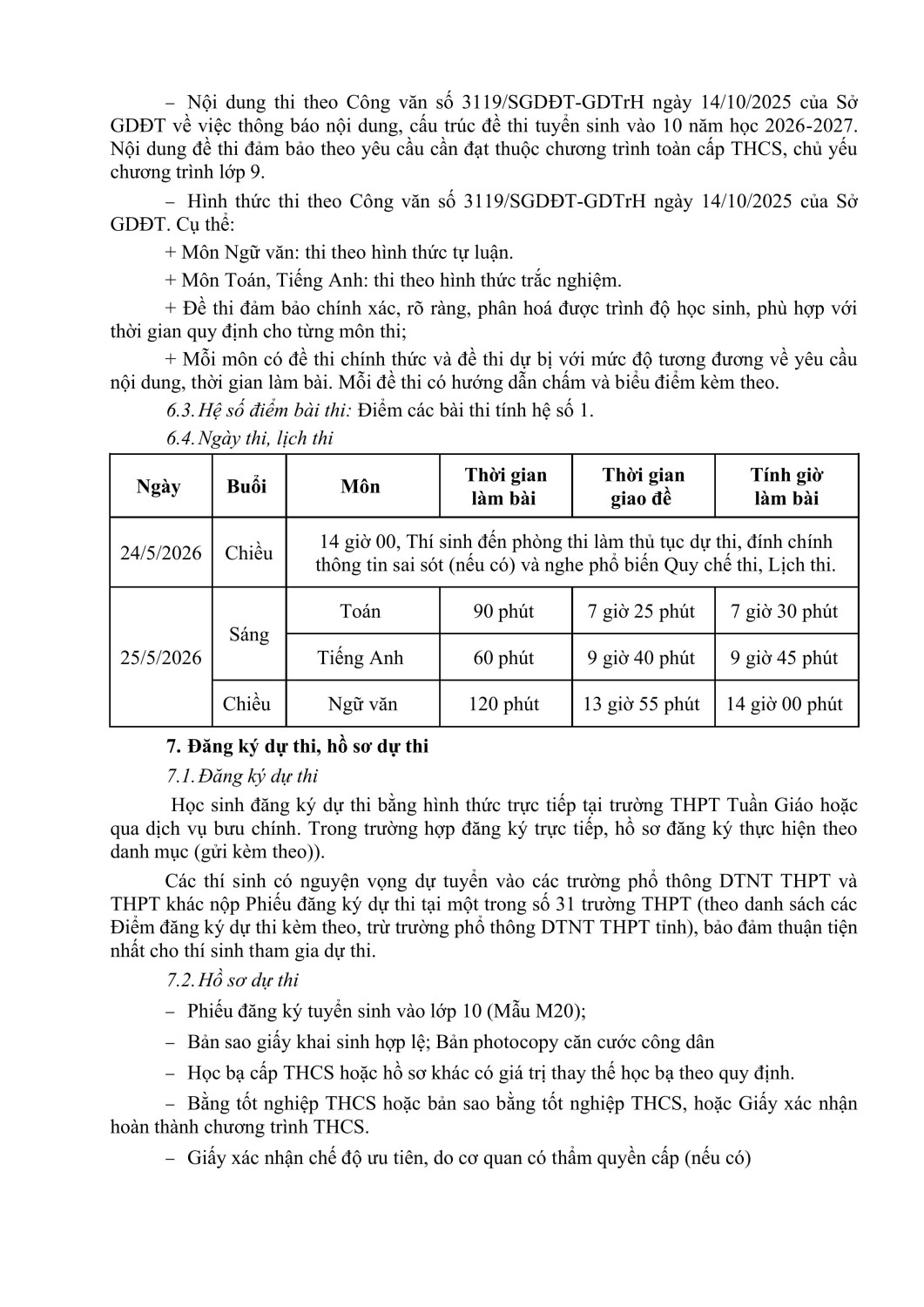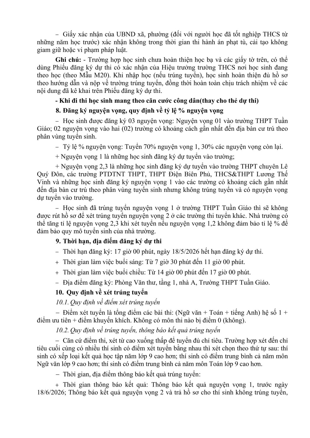 Thông báo tuyển sinh vào lớp 10 năm học 2025-2026