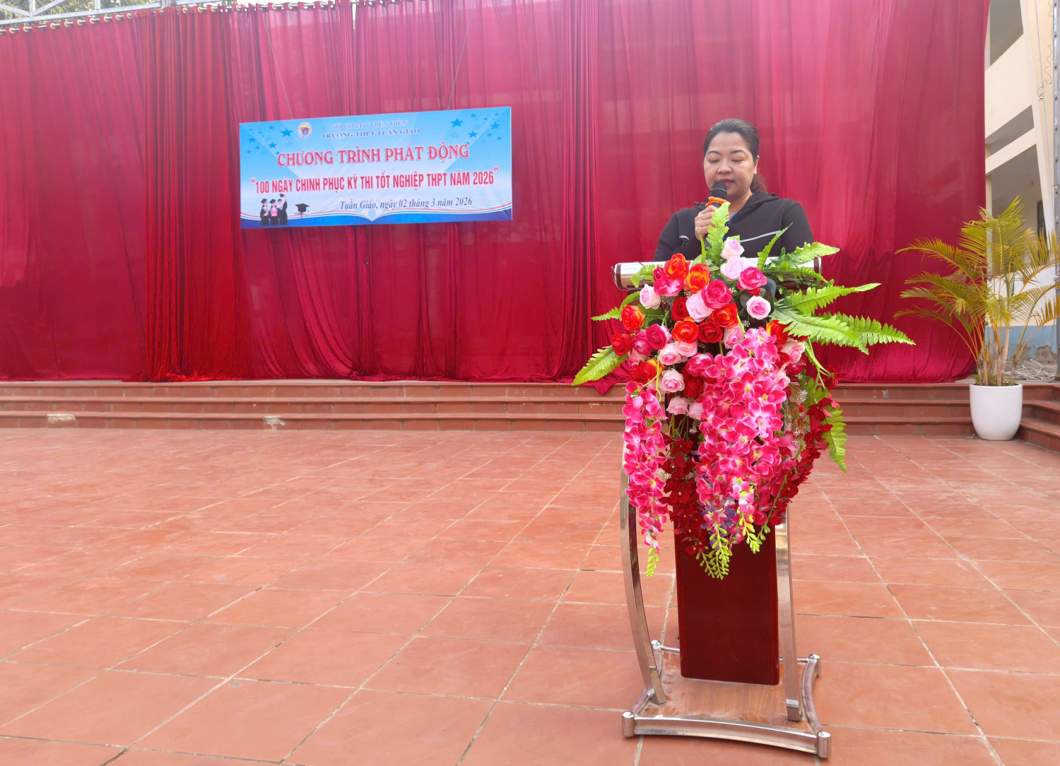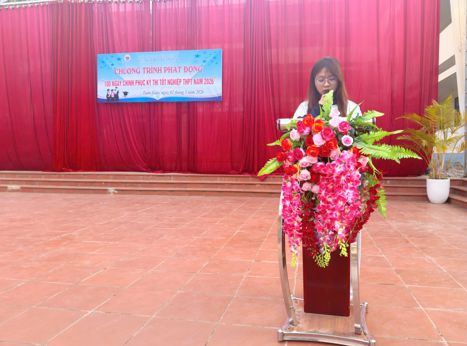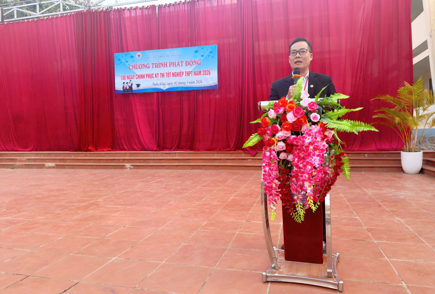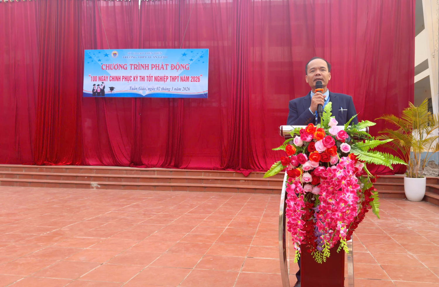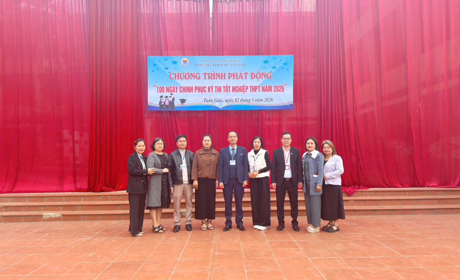 Sáng ngày 02/3/2026, Trường THPT Tuần Giáo đã tổ chức chương trình phát động “100 ngày Chinh phục Kỳ thi tốt nghiệp THPT năm 2026”. Dự chương trình có thầy giáo Bùi Trung Thành – Bí thư Đảng bộ, hiệu trưởng nhà trường cùng toàn thể cán bộ quản lý, giáo viên và học sinh nhà trường.